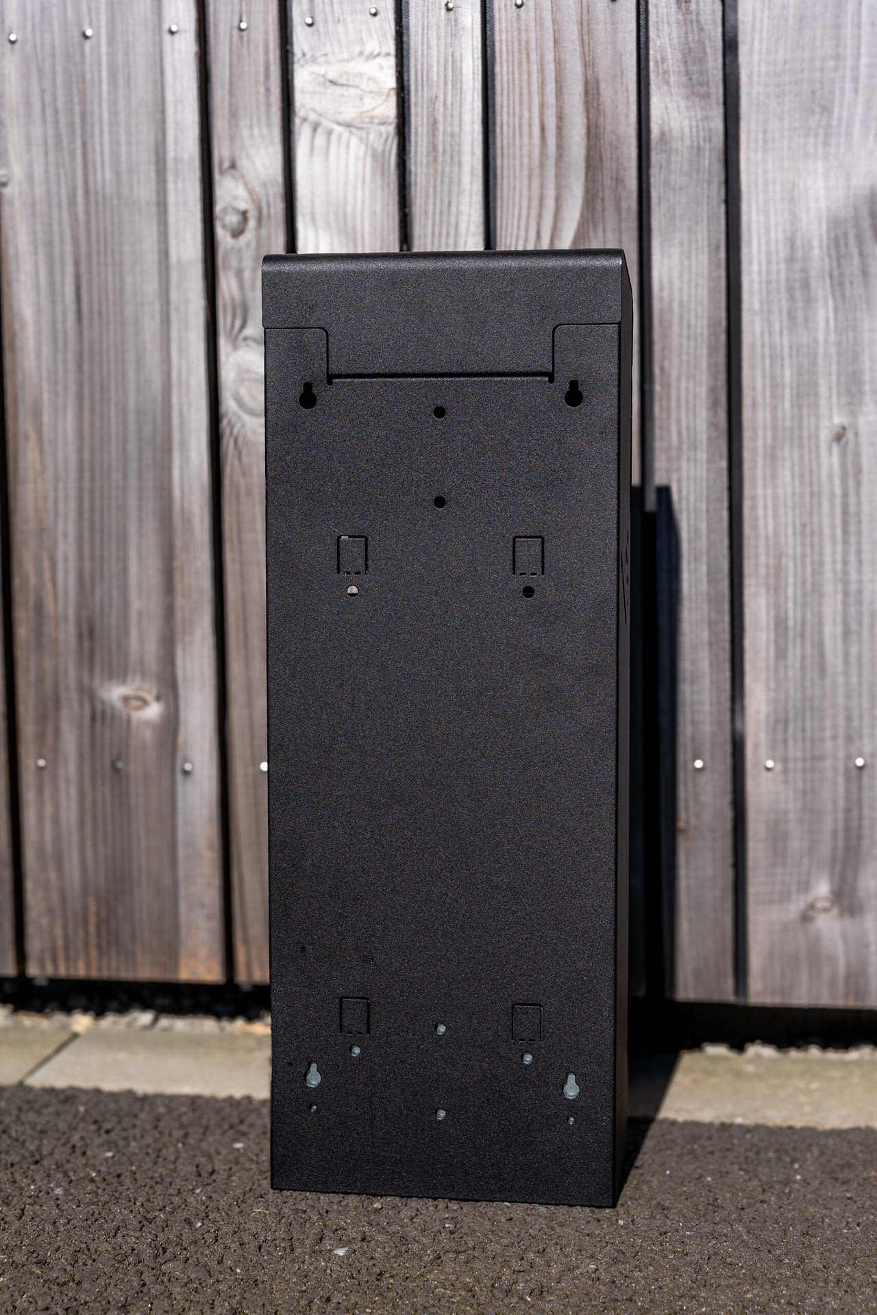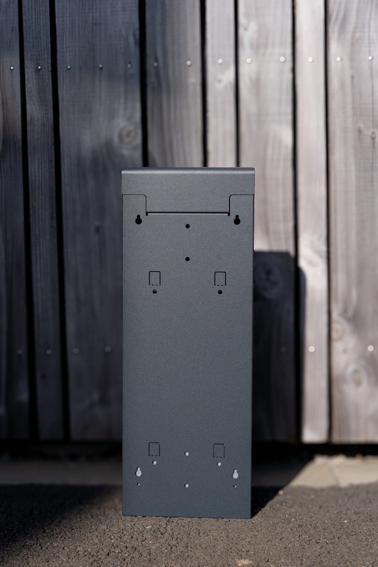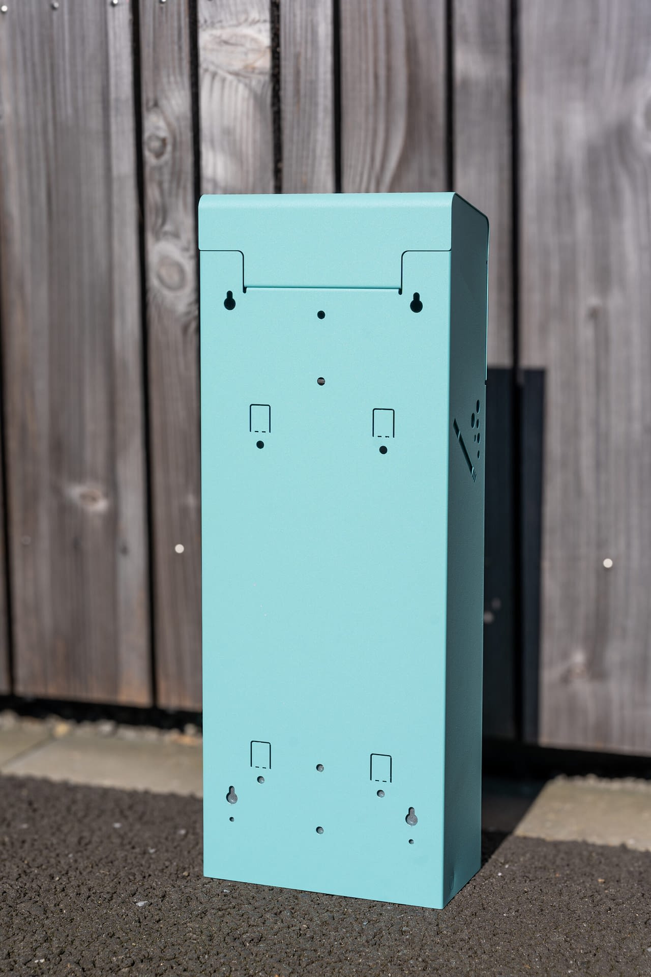 Acier galvanisé, bac de récupération en acier galvanisé à l’intérieur, grille eteignoir en inox, fermeture sécurisée par clé triangulaire, fixation au mur en 4 points par chevillage ou sur pied en acier en 2 points.